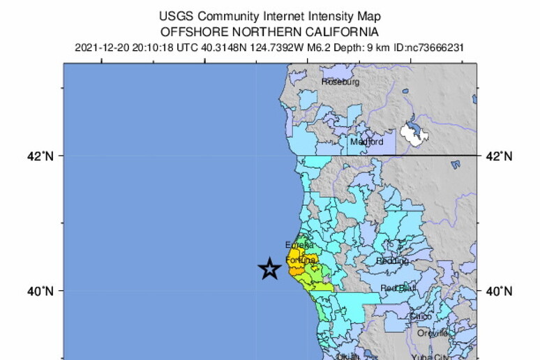 profondità di 10 chilometri vicino alla cittadina di Eureka,
