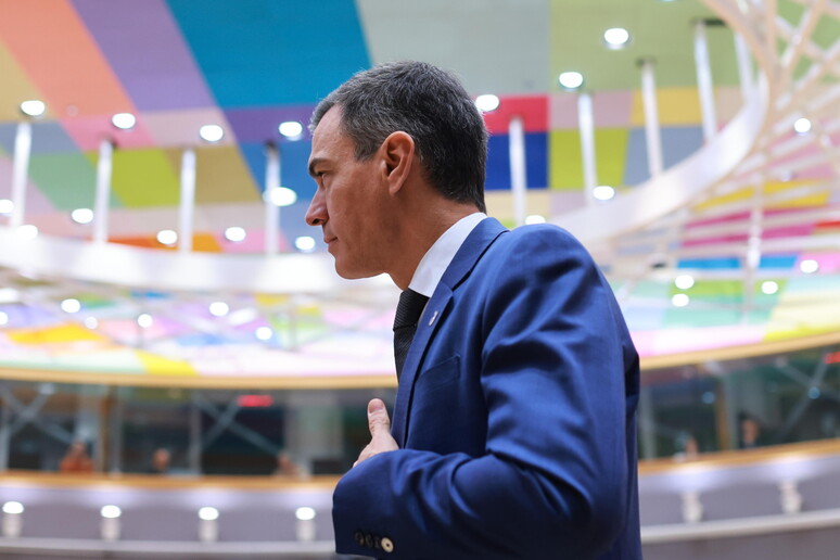 premier spagnolo Pedro Sanchez in conferenza stampa al termine