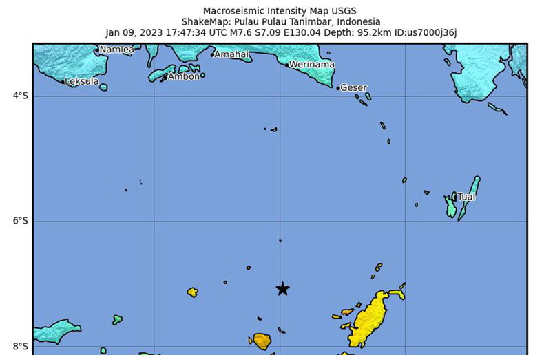 Il sisma è stato localizzato a 179 km a sud-ovest di Tual,ad