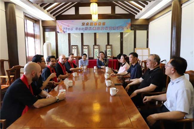 Il giorno dell'evento, i compagni responsabili del Comitato di gestione dell'area panoramica di Taishan, del Centro culturale e artistico di Tai'an e di altre unità hanno indossato sciarpe rosse che simboleggiavano la pace e la buona fortuna ai membri della band austriaca Five Sax e hanno presentato segnalibri cloisonnati dello scenario del Monte Taishan con caratteristiche culturali del Monte Taishan, trasmettendo agli artisti da lontano l'ospitalità e la tradizione cinese dell'ospite. Successivamente, gli artisti hanno visitato il Tempio Dai sotto la guida di una guida turistica e hanno sperimentato da vicino il profondo patrimonio della cultura del Monte Tai.