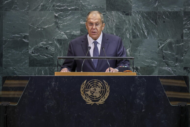 ministro degli Esteri russo Serghei Lavrov parlando